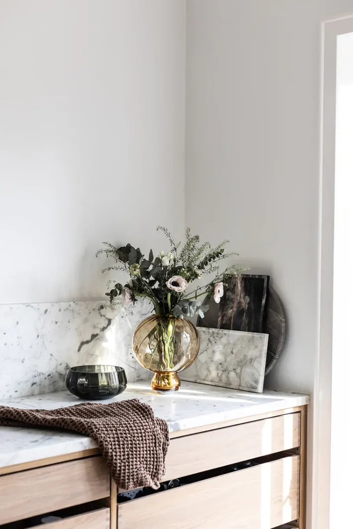 Meadow Vasen er med sin geometriske og moderne form designet til at kunne være et centralt design objekt i hjemmet hele året rundt – uanset blomstertrend.