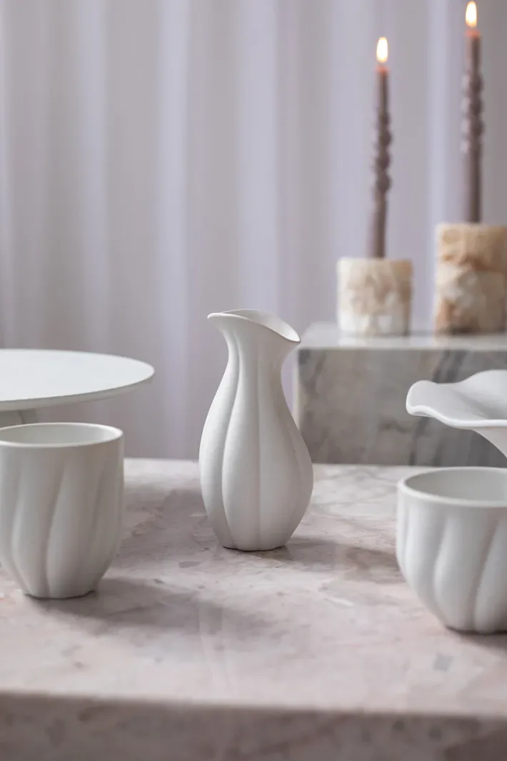 Nellie mælkekanden er en del af vores populære Nellie kollektion, som findes i et bredt specktrum af designs; Vaser, kagefade, skåle, kander mm.