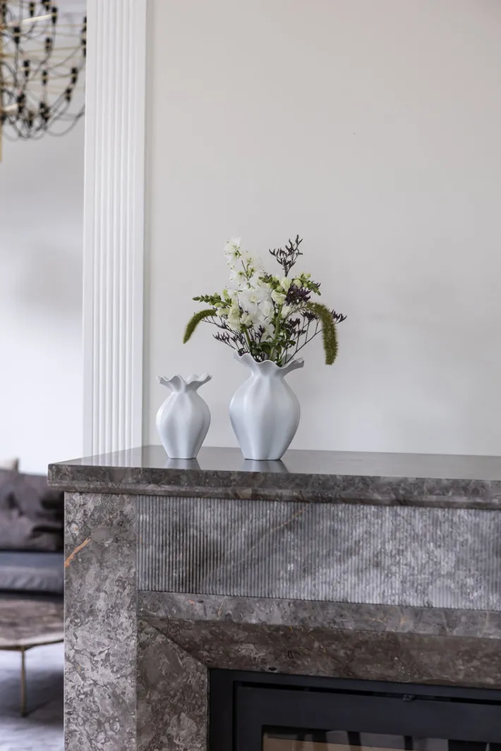 Nellie vasen er skabt i samme ånd som Nellie kanden. Denne håndlavede vase, lavet af keramik, er et kunstværk i sig selv. Den glatte overflade og bølgende linjer giver vasen et elegant og moderne udtryk. Inspireret af naturens skønhed er vasens åbning formet organisk.