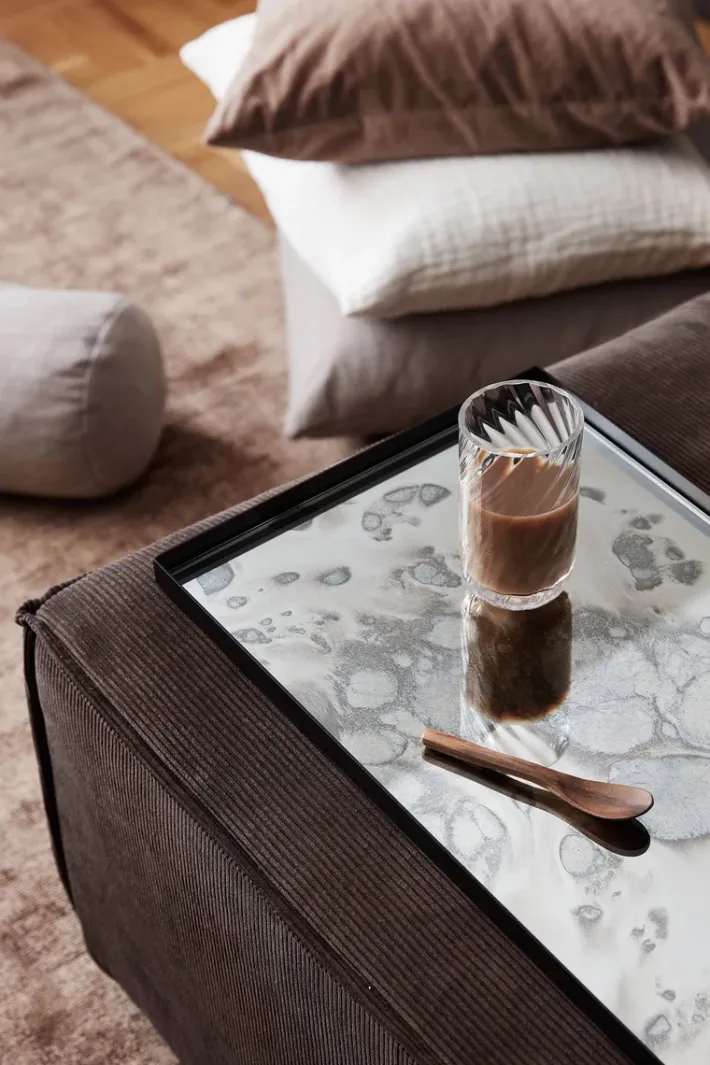 Silver antik bakke er designet til at være en eksklusiv og dekorativ tilføjelse, som kan anvendes i alle husets rum. Den unikke spejloverflade og den sorte metalramme forener det moderne med det klassiske.