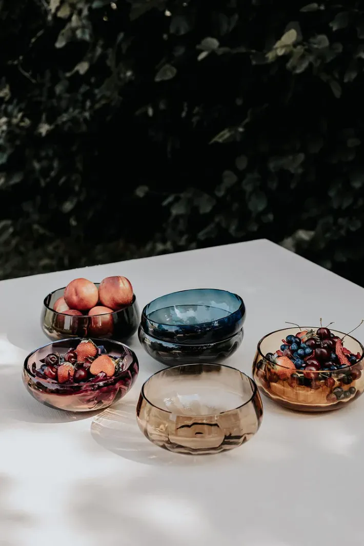 Specktra kollektionen forener traditionelle og rige håndværksteknikker med moderne luksus og elegance. Hele kollektionen er mundblæst og produceret i Europa. På grund af den håndlavede process er hver skål unik. Dette betyder, at der kan forekomme variationer i form af luftbobler, vægt og mønster fra skål til skål, hvilket er en del af håndværket, som vi elsker, værdsætter og beundrer.
