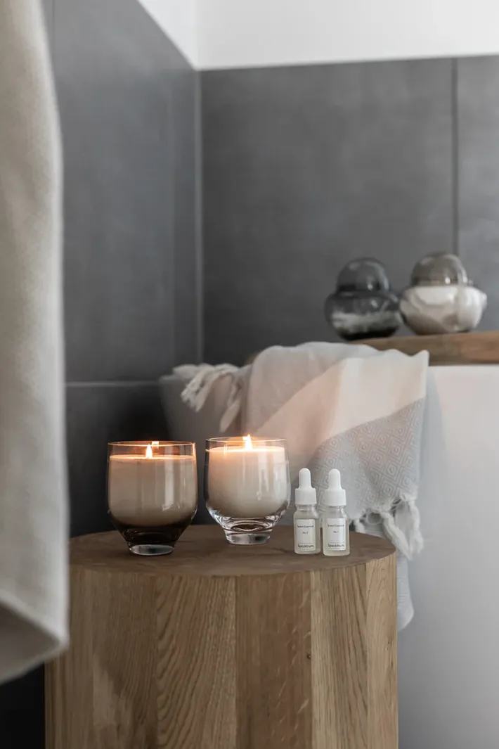 Skab dit eget duftlys ved at tænde lyset, og lad lyset smelte en smule. Vælg duften af Specktrum Scent Essential No. 1 eller No. 2, som du synes passer bedst til netop det specielle øjeblik. Tilføj forsigtigt få dråber af olien ned i det flydende lys (ram ikke flammen), således at duften kan blive fordelt og fylde rummet med den valgte duft. Hvis du ønsker at øge intensiteten af duften, tilføjer du blot ekstra dråber af olien løbende.