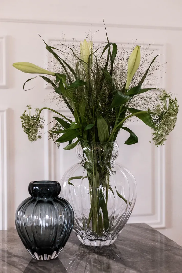 Hver Audrey vase er produceret og mundblæst i Europa. Dette betyder at, hver vase er unik og luftbobler og andre ufuldkommenheder er en del af produktionen, som vi elsker og beundre. Den mundblæste teknik er et gammelt håndværk, der er gået videre i generationer. Vi omfavner den unikke proces og arbejder tæt sammen med vores produktion, for at kombinere vores moderne designs med deres traditionelle færdigheder.