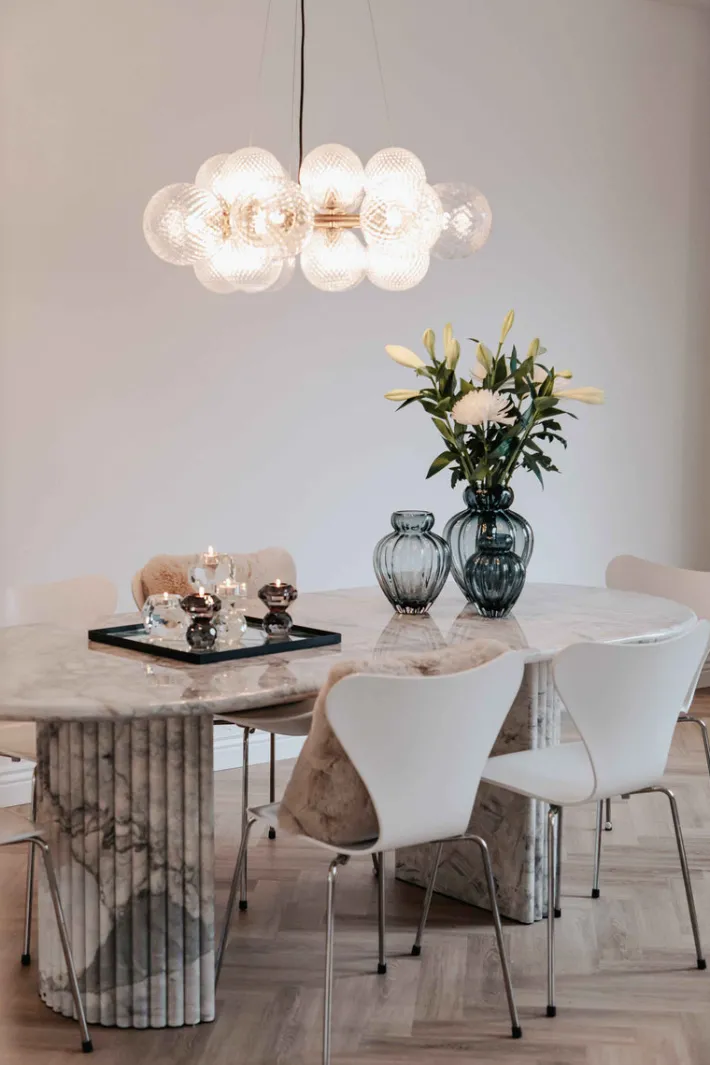 Hver Audrey vase er produceret og mundblæst i Europa. Dette betyder at, hver vase er unik og luftbobler og andre ufuldkommenheder er en del af produktionen, som vi elsker og beundre. Den mundblæste teknik er et gammelt håndværk, der er gået videre i generationer. Vi omfavner den unikke proces og arbejder tæt sammen med vores produktion, for at kombinere vores moderne designs med deres traditionelle færdigheder.