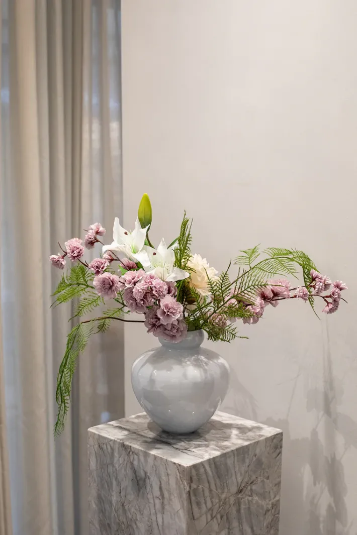 Forny dit hjem med vores eksklusive kunstneriske blomsterbuket. Med sin enestående kvalitet, naturtro udseende og smukke kombination af blomster, vil den tilføje en farverig touch til indretning.