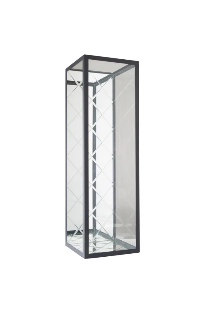 Harlequin Lanternen kommer i 4 størrelser, hvoraf denne variant kan anvendes til at hænge på væggen. Denne Harlequin størrelse har Harlequin spejl i bunden og på bagsiden. Lanternen er åben i toppen og kan ikke åbnes i siderne.