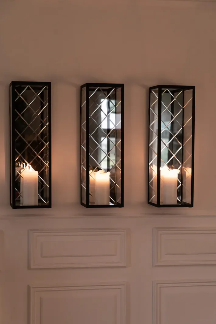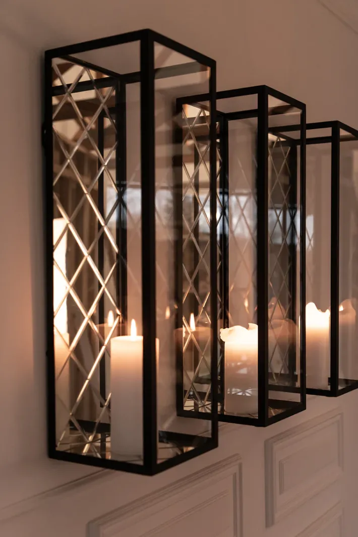 Harlequin lanternens spejlflade lader det smukke skær fra de levende stearinlys skabe smukke og dansende refleksioner.