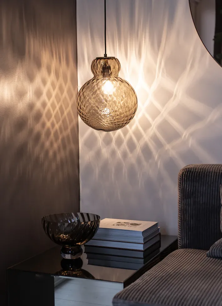 Den dekorative og moderne form kombineret med vores mundblæste unikke mønstrer, skaber en luksuriøs og spændende lampeløsning.