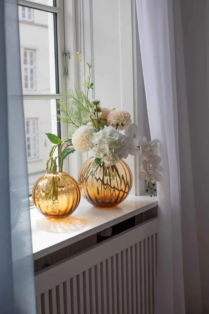 Sadie Line vasen er med sin runde form og mundblæste linjer en oplagt design vase til hjemmet – hele året rundt – uanset blomstertrend. Arranger smukke blomster eller lad vasen stå frit som et design objekt.