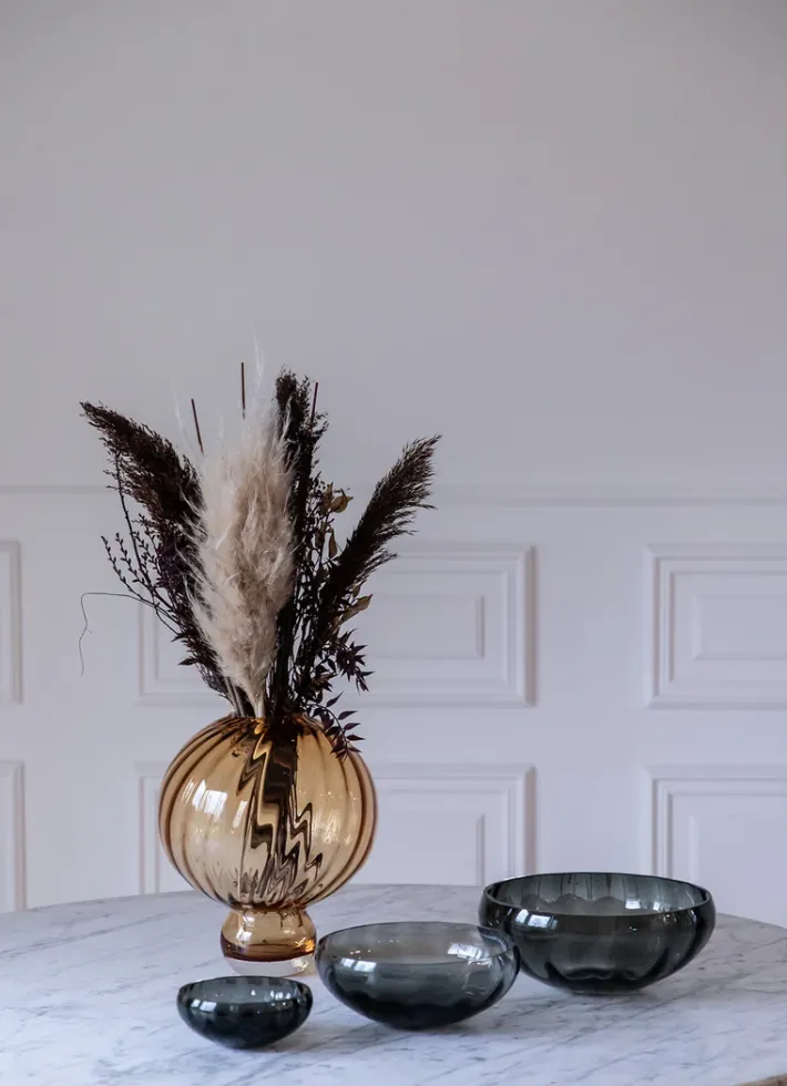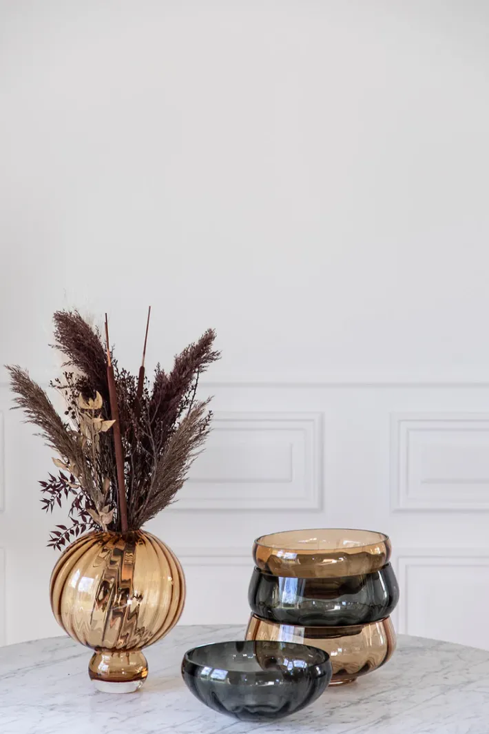 Specktra kollektionen forener traditionelle og rige håndværksteknikker med moderne luksus og elegance. Hele kollektionen er mundblæst og produceret i Europa. På grund af den håndlavede process er hver skål unik. Dette betyder, at der kan forekomme variationer i form af luftbobler, vægt og mønster fra glas til glas, hvilket er en del af håndværket, som vi elsker, værdsætter og beundrer.