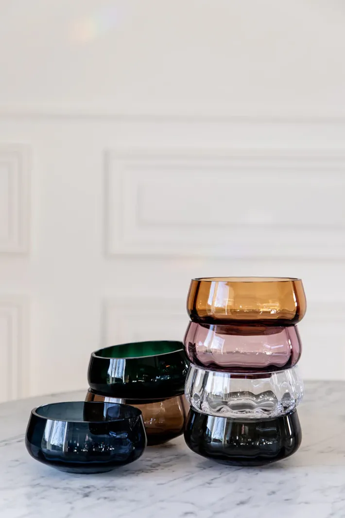Specktra kollektionen forener traditionelle og rige håndværksteknikker med moderne luksus og elegance. Hele kollektionen er mundblæst og produceret i Europa. På grund af den håndlavede process er hver skål unik. Dette betyder, at der kan forekomme variationer i form af luftbobler, vægt og mønster fra skål til skål, hvilket er en del af håndværket, som vi elsker, værdsætter og beundrer.